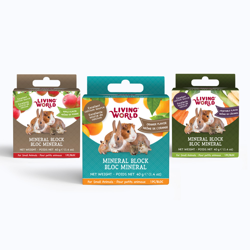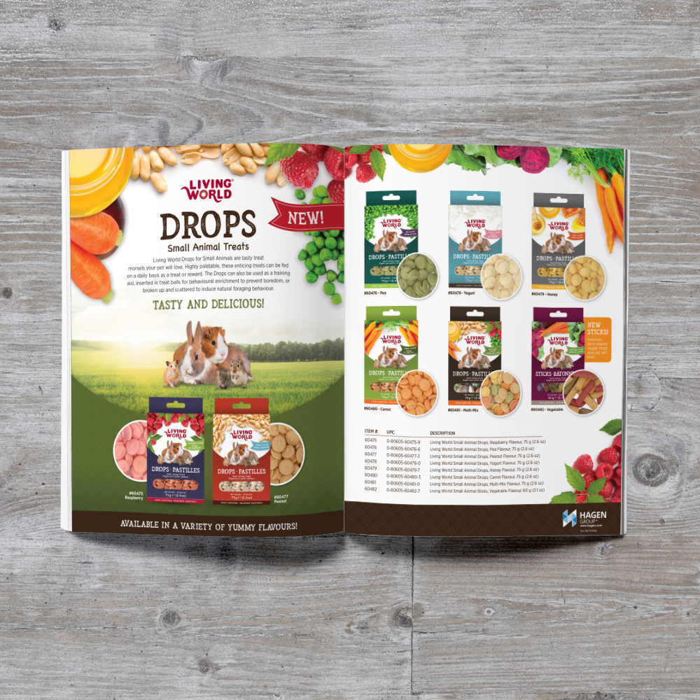 Living World was looking for bright enticing packaging for their small animal line. Bright imagery of the ingredients were used to bring the boxes to life and bold colors were used to pop the small products on the shelf.