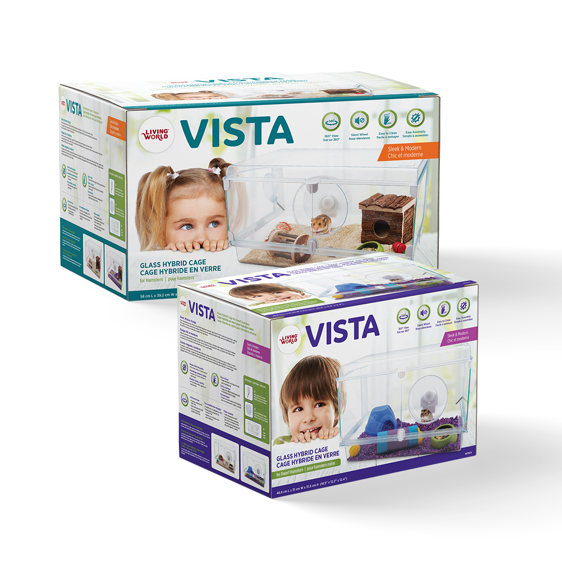 The Living World Vista hamster cageĀ is an elegant and sleek product that can fit in any decor. The goal of the packaging was to attract children and highlight the transparent nature of the product.